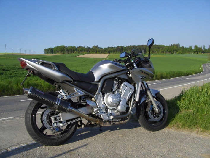 Kurz: Auf jetzt! Und auf meine aufgefrischte Yamaha Fazer, bei der mir mein Schrauber des Vertrauens frischen Gummi aufgezogen, das Hinterteil von überflüssigem Plastik befreit und die schnuckeligen Blinker montiert hat.