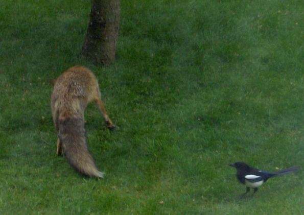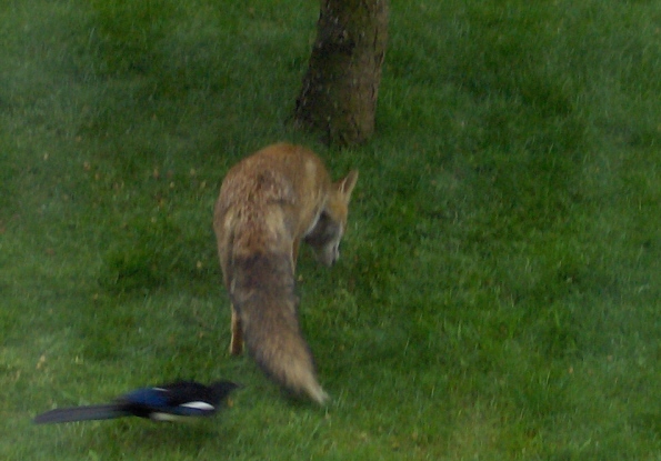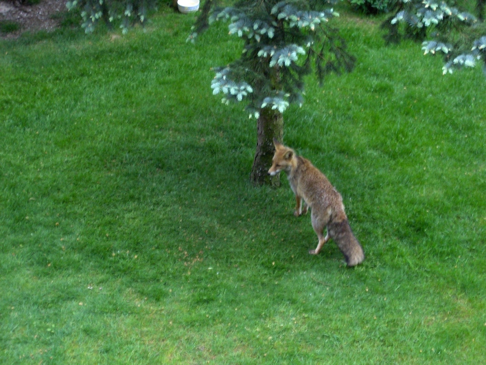 FĂĽr einmal ist nicht der notorische Falschparkierer und Berner SVP Grossrat Thomas Fuchs gemeint, vielmehr hat sich bei uns in Nachbars Garten ein Rotfuchs eingefunden, um sich den Bauch mit Katzenfutter vollzuschlagen.