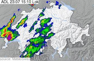 Und tatsächlich, das Regenradar warnte zum Glück noch vor, so konnte man das Auto noch rasch ins Trockene bringen bevor die weissen Bälle vom Himmel flogen.