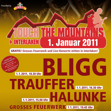 Nach 2007 (Kinder wie die Zeit vergeht) organiserten wir uns für den Neujahranfang 2011 zwei Gemeinde-GAs und fuhren mit der BLS nach Interlaken zum 1.-Jänner-Kracher Touch The Mountains Music Event mit Feuerwerk. Und ja, es het gfägt! 🙂