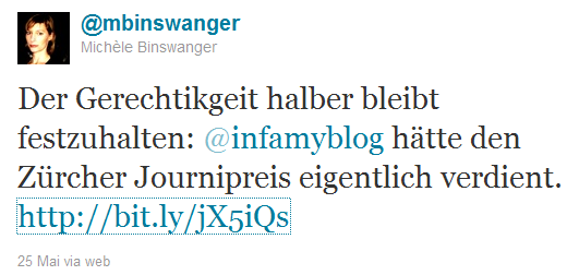 - Nachwuchspreis für „Tagi“-Redaktor / Ehrverletzungsklage hängig. (by persoenlich.ch)